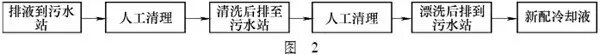 這時(shí)要及時(shí)換液,以防切削液突然惡化,影響正常的加工過(guò)程。常用切削液換液步驟如圖2所示。