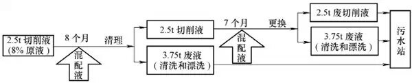 切削液壽命到期前要進(jìn)行切削液的更換,是集中消耗。原用液體全部作為廢液處理,系統排空后完全配加新的切削液。